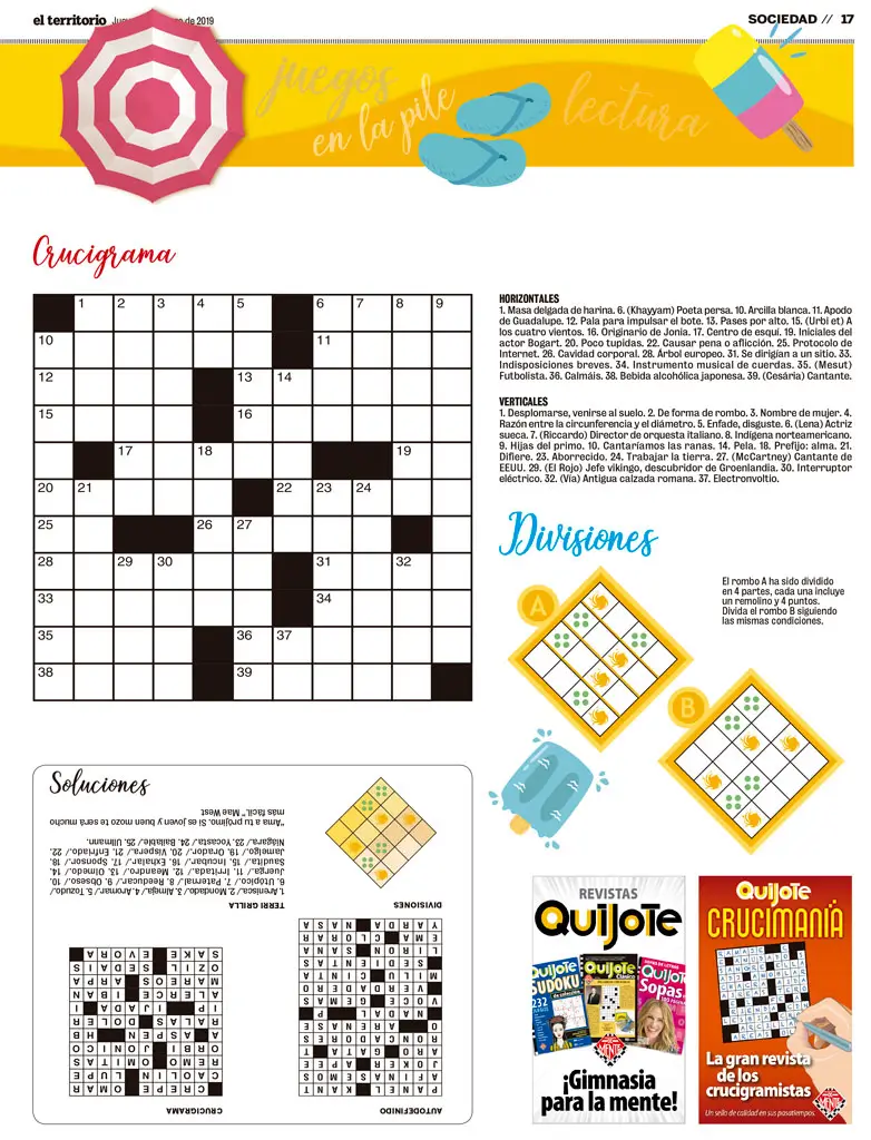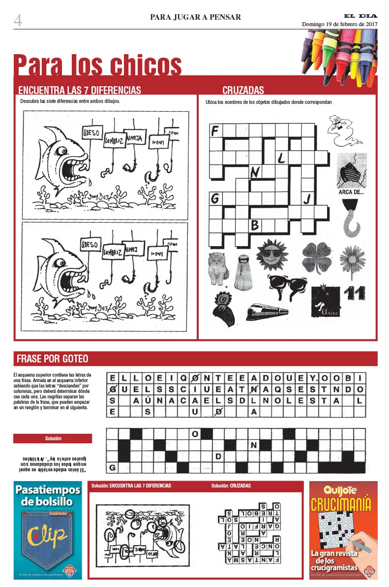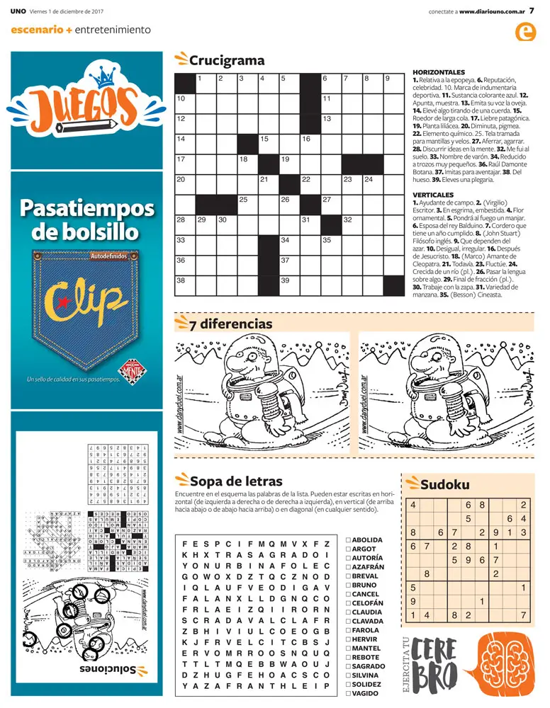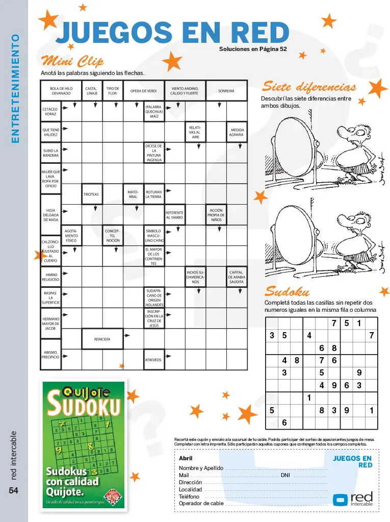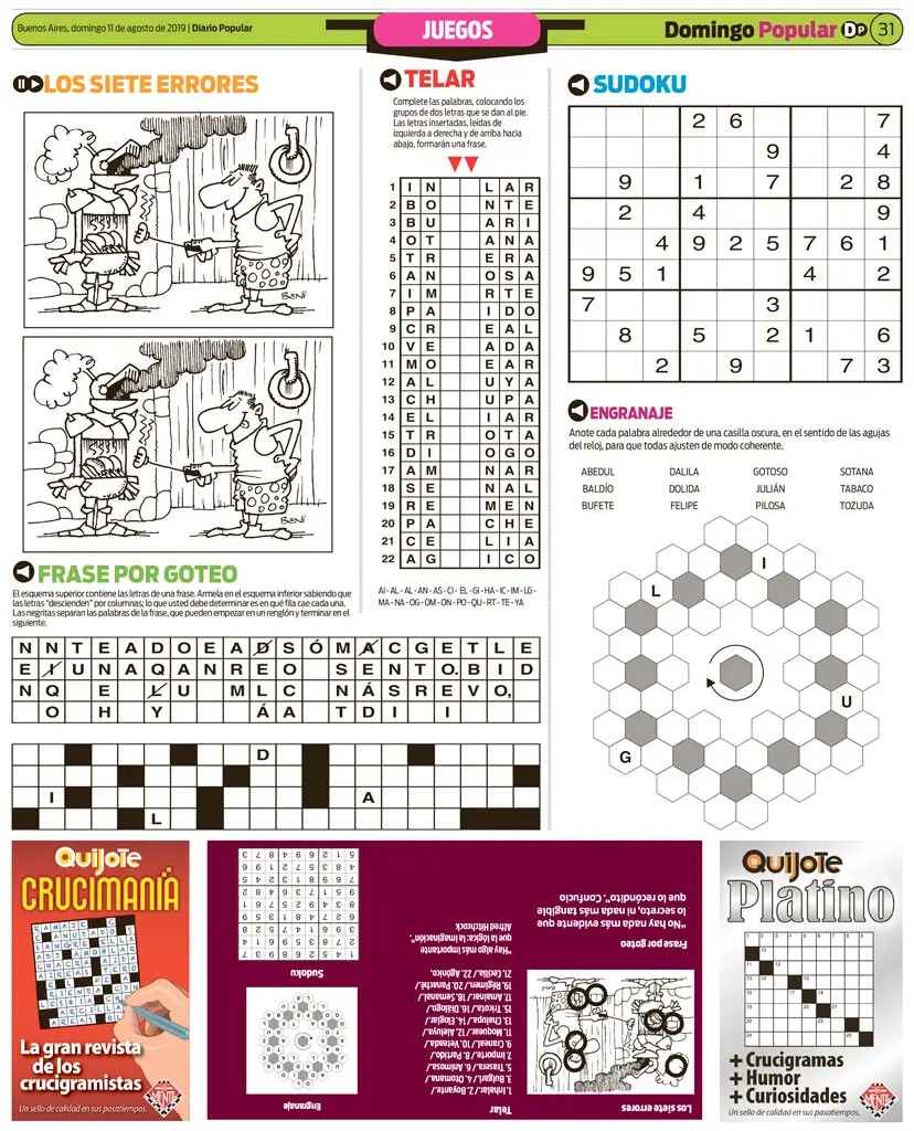 Su medio puede tener los mejores pasatiempos del país. Entretenimientos realizados en Argentina por los especialistas de Ediciones De Mente, creadores de las revistas Quijote, Cruzadas, Clip, Sopas, Sudoku…